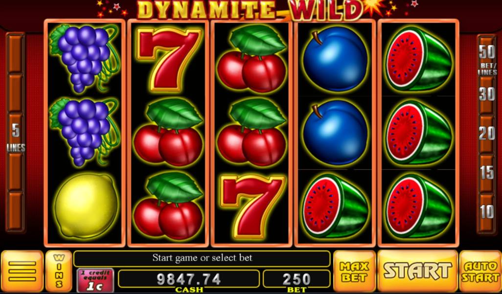Different fruits and berries are imaged at the reels of «Dynamite Wild» video slot. Other basic symbols is red seven. All icons might drop in vertical stacks that lets them filling whole reels or a whole screen.