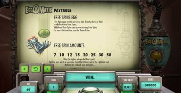 The EggOMatic slot machine has a very unusual Conveyer Belt feature, which can be considered a type of bonus game. There is a conveyor belt over the reels, and to the right of them is a special machine that throws on the belt prize eggs: Spreading Wild Egg, Free Spins Egg, Coin Win Egg and Surprise Egg.