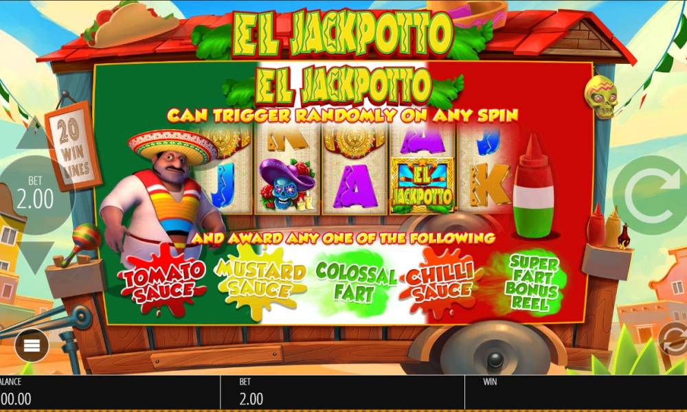 • Bonus (El Jackpotto) triggers The Ultimate Luchador feature. It begins when three, four or five Scatters appear at any cells.