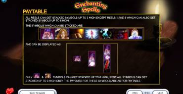 It is only possible to set up size of the screen and sound parameters. You won’t download «Enchanting Spells» slot machine, because it was designed for playing in a browser. Mobile version designed for comfortable playing on smartphones is also provided.