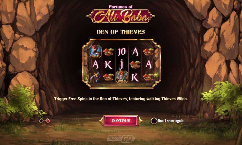Fortunes of Ali Baba offers basic symbols, 2 wilds, a scatter, a bonus round, freespins, and advanced prize options.