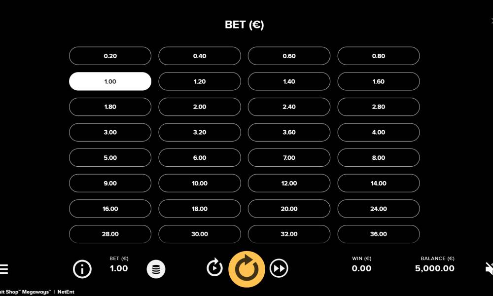 Maximum winnings in Fruit Shop Megaways is 10,000 bets.