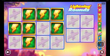Lightning Rounds bonus is activated when 3 or more lightning symbols fall out. The player gets 5 freespins in which the lightning symbols must be collected on a 4x3 grid.