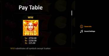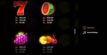 The design of the machine is simple and modest. The reels are located on a burgundy background. There is no excessive animation or bright special effects. Only highlighted winning lines and shows the total prize. Before starting the game, the user can go to the menu (button "i") and read the rules, see payout table. Then it's easy to start playing in three steps: