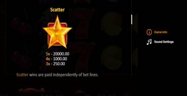 Scatter symbol is a star, which gives an award, even if the signs are placed not on the neighboring reels, but in any places. For 3, 4 and 5 pieces the player will get x5, x20 and x400 of the bet respectively.