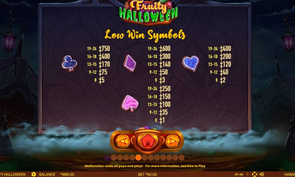 The Fruity Halloween slot machine has the following characteristics: