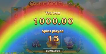 Hit frequency in the Gaelic Gold machine is 17.93%. This is not much, which means that there will be few prize rounds. We can only hope to get large sums of money.