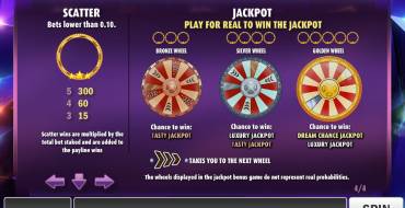 Scatter brings wins independently of its location at the screen. Three, four or five Scatters also trigger bronze, silver or golden fortune wheels accordingly. The jackpots are drawn there, which you can read about below.