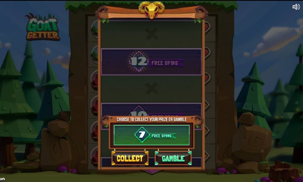 Before the round begins, players can bet on the chance to win additional free spins or lose their freespins.