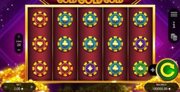 Gold Gold Gold is a classic slot with a minimal set of features. On a field of 5x3 player will meet 9 symbols (of which 2 have special properties). Despite the "golden" name, you can win only up to x2000: such a multiplier will give 5 Scatter symbols that fell out in one rotation. Payouts are given for lines of identical symbols.