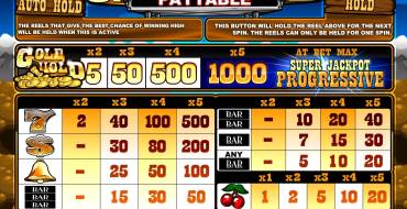 Please read about all exceptions from the rules and the the bonus options below. Unfortunately, we don't have any information about the theoretical cash back index of Gold Hold slot machine.
