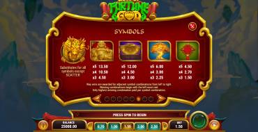 Gold of Fortune God is a slot from provider Play'n GO, offering to beat the dragon to get its untold riches. Despite the long-standing and familiar Asian setting, the previously encountered bonus features and the lack of unique mechanics, the game holds a decent position in the ratings. The fans love the excellent balance in the technical parameters.