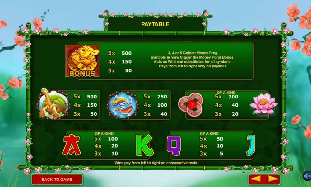 - Wild/Bonus (a golden from with coin) forms combinations by general rules. Moreover, this symbol works as a joker, replacing other icons in winning combinations when necessary. Three and more Wilds also trigger Money Pond Bonus.