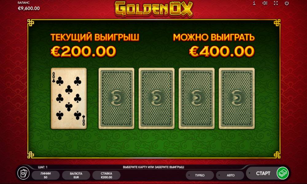 Oriental people know a lot about wealth! Video slot Golden Ox creates an enchanting atmosphere of wealth and luxury, because the golden bull is a symbol of financial success. The game will gift everyone with fantastic winnings, obtained thanks to interesting bonus mechanics with fixed on the reels of Wild symbols, multipliers, free spins and risk game.