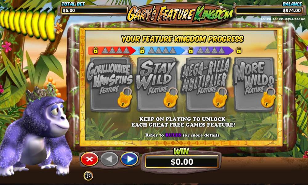 Gary Goes Bananas - after any spin Gary can eat one of bananas hanging above his head. When they are finished, gorilla goes to the other part of the jungles. There Gary the Gorilla round would be launched much more often. You can get up to three such moves.