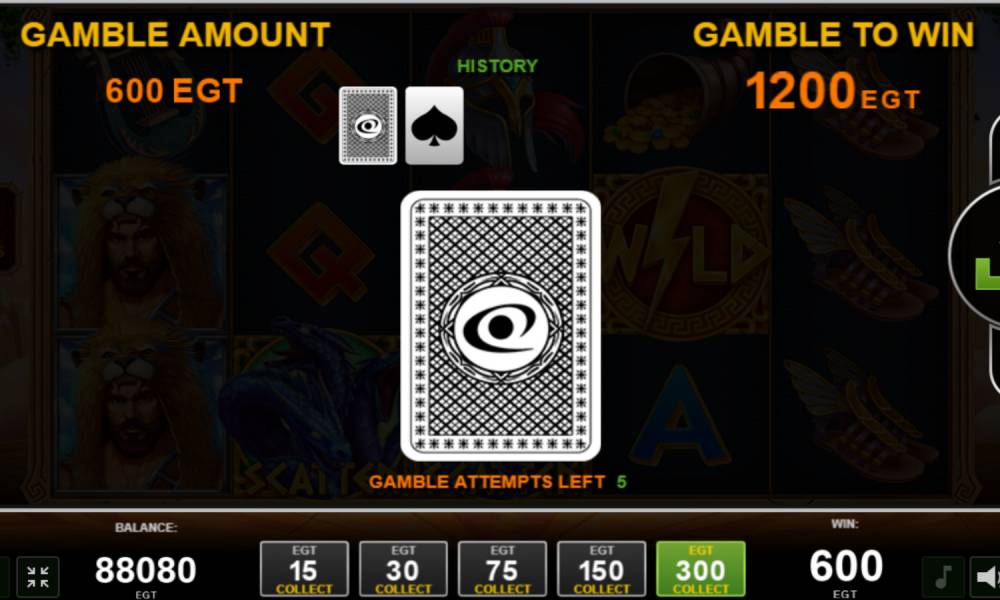 The Gamble round will appeal to those who like games of chance. It can be triggered by the user at will after receiving a win. In the round, the player is asked to guess the color of the card (red or black, and accordingly the odds are 50/50). The correct answer brings x2, wrong - zero the account.