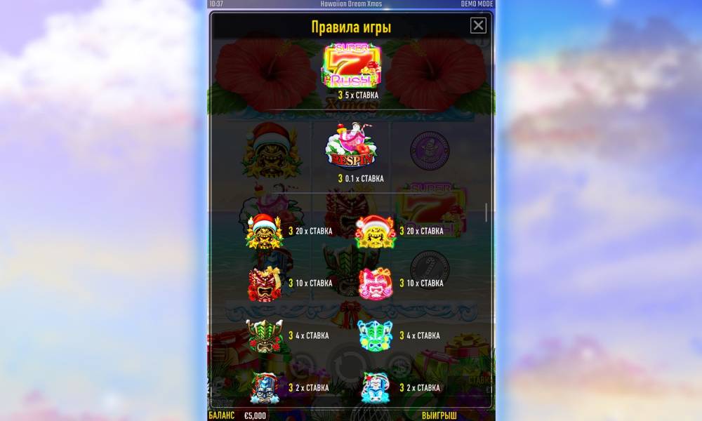 The continuation of the series of slots about Hawaiian dreams turned out to be successful. Yes, you can't get big prizes here, it's better to use other parts of the machine for that. But you can enjoy your favorite machine in a slightly modified Christmas theme. Casinoz experts believe that this online slot is more suitable for beginners and fans of the Hawaiian genre and devices provider Winfast.