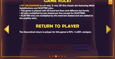 There is another indicator that is desirable to know before betting is volatility, in Hit The Diamond it is set at an average level, which implies that the payouts will not happen with the same frequency as in low-volatility slots, but when they come, they will be much larger.