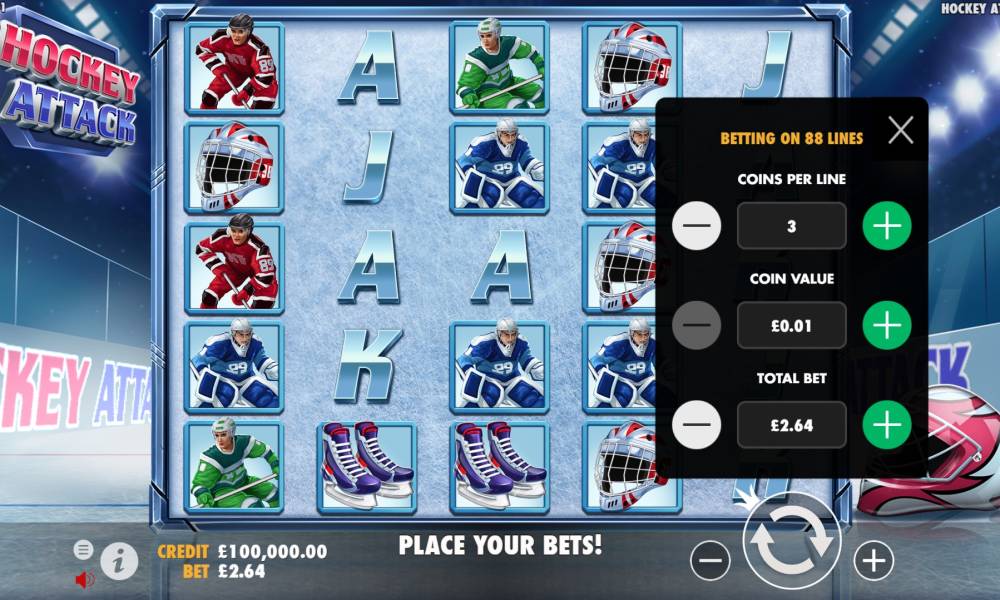The Hockey Attack slot machine from the Pragmatic Play provider is dedicated to hockey themes. If you are lucky, you can win large prizes, up to 2,500 bets.
