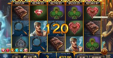There are eight basic symbols in this game: Sherlock Holmes, Doctor Watson, an old notebook, a loupe and four colorful card suits. All these icons work by the general rules and make combinations of three, four or five same elements. The special symbols are Bonus, Free Spin and Jackpot (a green diamond). During the game, the player collects gems. Ten same elements give right for participation in ten free spins. They can also be trigged by three and more Scatters. If four or five Scatters drop at the screen, the gambler is provided with payoffs as well. During free spins the casino stakes instead of the player. Here you can also fight for progressive jackpots. To win one, you need to pick five same diamonds. Bonus triggers the prize round by the topic of the video slot when at least three such symbols appear at the screen.