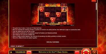 The Hot Slot: Magic Bombs offers a high return on investment (RTP), which makes it attractive for long-term play. The adjustable volatility allows you to choose the level of risk depending on the player's preference, which adds flexibility to the gameplay.