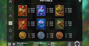 The gaming symbols, imaged at the reels of this slot, are three heroes, mentioned above, along with a sword, a stick, a crossbow and four coins. All icons form stacks. The same symbols may take whole reels.