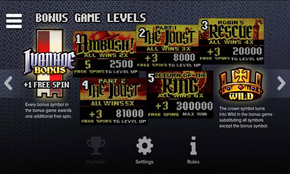 «Ivanhoe» online video slot, inspired by Valter Scott’s novel is a slot machine of classic type with intentionally primitive graphics. However Elk Studios would compromise themselves if they haven't provided this game with unusual prize features. The following review by Casinoz.club would tell you about surprises prepared by the producers.