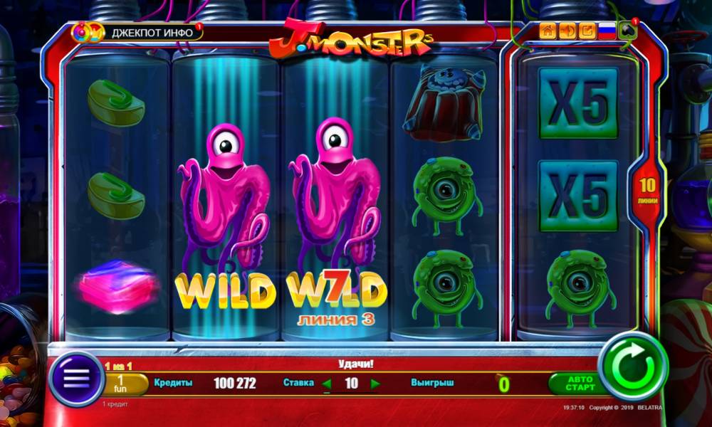This funny and dynamic slot involves into the gameplay with no significant risk to your bankroll. Belatra has announced a low variance of J.Monsters, which has been confirmed by the experts of Casinoz.club.