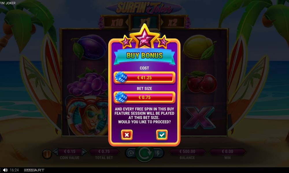 The level of volatility in Surfin' Jocker slot is low. Frequent wins rarely bring significant amounts, but raise the mood. Slot with this characteristic is recommended for beginners.