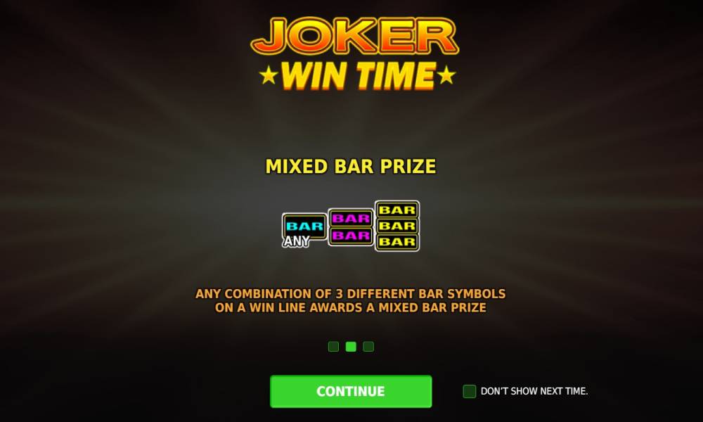 Multiple payoffs are possible ing result of a single spin in «Joker Win Time». All charged credits are automatically withdrawn to the balance. There is no gambling feature here.