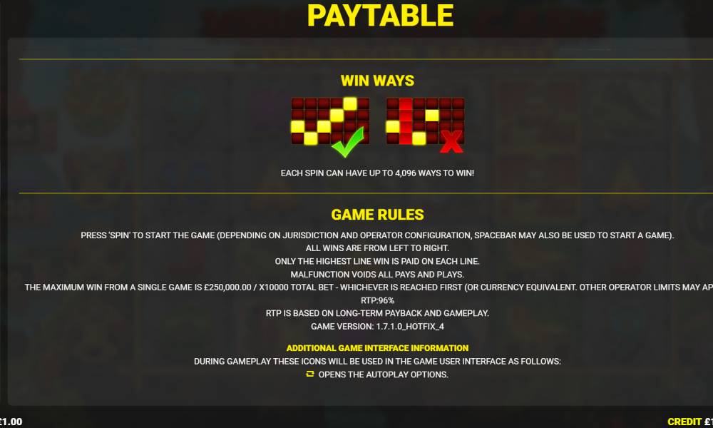The online slot offers 6 reels in 4 rows and 4,096 fixed paylines.