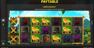 • Cash Collect is King Kong, which only stops on reels 1 and 6. It always opens to the full reel and collects bananas from the field.
