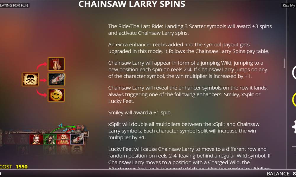 Playing Kiss My Chainsaw is quite interesting, although those who have already tried online slots with cutting signs and wild rams will be a bit bored. The clear advantage of the machine is that it is simple and clear, and therefore perfect for beginners. Well, for experienced players it can offer a solid score.