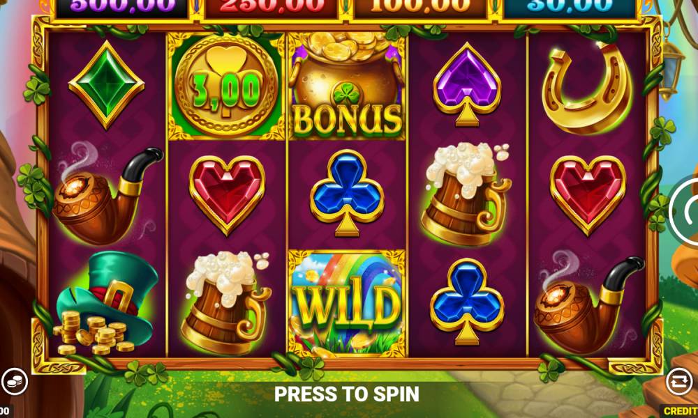 In the Limerick Lightning slot machine, the user finds himself in a fairy tale forest, where he walks in the shade of branching trees under the rainbow. All actions are accompanied by a very active Tyrolean melody and the ringing of coins during a win. Animation in the online slot is insignificant - highlighted and delayed drums for intrigue, highlighted prize symbols, flying fireflies on the field. Watching the game is pleasant, and to manage it is simple. To get started you need to: