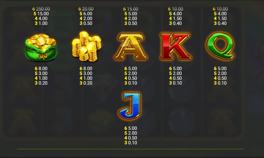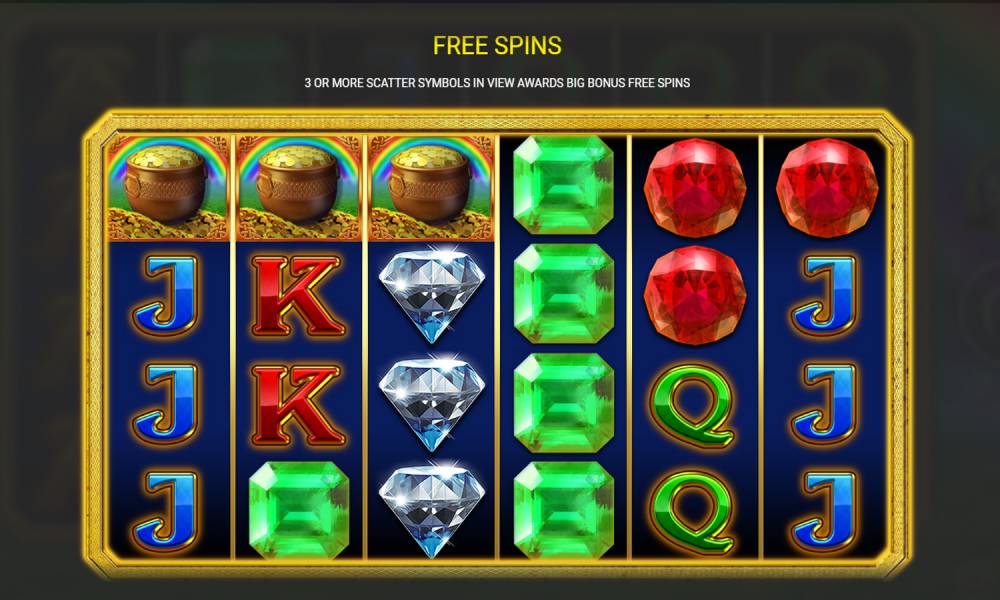 Scatter symbol is a pot of gold that activates free spins. The symbol can appear on all reels.