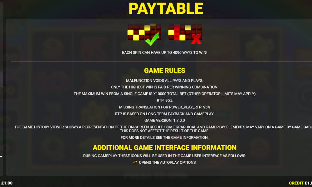 The online slot offers 6 reels in 4 rows and 4,096 fixed paylines.