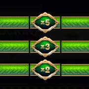 The basic symbols are colorful stripes. These icons look like a small table with multipliers at the second reel.