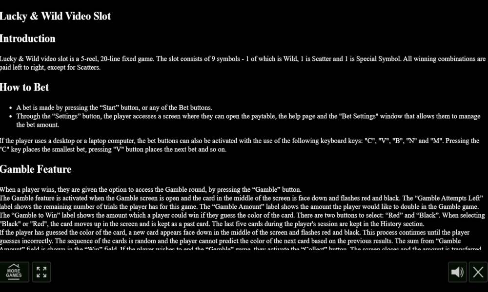 The bonus feature of the Lucky & Wild online slot is related to the game of chance. The user will have to make a choice between red and black. With the correct answer, his bet will be doubled every time, with the wrong one - will be burned and the round will end. You can win no more than 5 times.