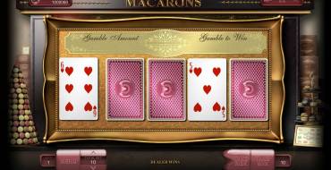 «Macarons» is a slot machine with five reels and ten pay lines. It is possible to place bets of the equal size per each of the lines: up to one hundred coins of value from one cent to five credits. This way, the slot accepts bets in a very wide range - from 0.01 to 5000 credits in the gaming currency.