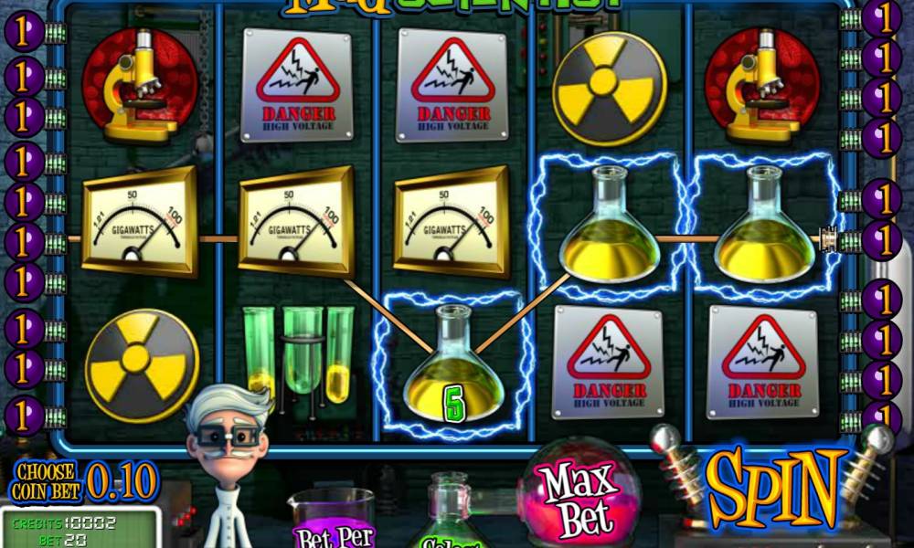 If you visit any well-equipped science laboratory, you would immediately see different tools and equipments, which is imaged at the reels of Mad Scientist slot machine. Here you can make a list what to buy to the laboratory if you decide to make a science career! The gaming symbols, which you would see at the screen of this model, are images of different bottles, microscopes, «Warning, High Tension» signs, a board with formulas and other things, which names are unfamiliar to the common people, but which are necessary for the scientists to make unbelievable discovers.