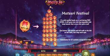 «Matsuri» video slot has five reels of different symbols, located in three lanes at the screen. It is possible to play by all twenty five active lines only.
