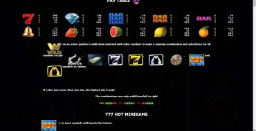 The 777 Hot mini-game is a special bonus round not found in other slot machines. The round is activated after three or more Hot symbols fall and takes place on the reels with a 5x3 layout. As the bonus reels spin, you can increase the values of multipliers and win the next rounds. The duration of the mini-game is unlimited.