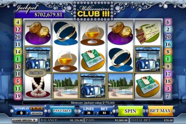 As well as in Millionaire’s Club I and Millionaire’s Club II slots, the gaming symbols, which you would see at the reels of this version, are different items connected with the millionaires’s life. There are mansions, yachts, Rolls-Royces, villas, jewelry of gem stones and metals, opera tickets with VIP seats, huge banknotes, peacocks and so on.