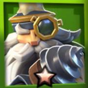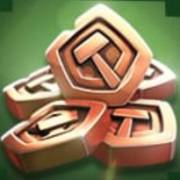 Of course, you are going to descend in the mine accompanied by the dwarves. Symbols appear on a massive shield made of wood and iron. You will see rails, candles, and chains in the background. A minecart will pass through the screen time after time.