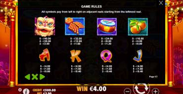 The screen is full of festive vibe. People celebrate New Year in the light of fireworks. The color scheme is typical for Chinese-style slots. Red and golden elements prevail in the slot.