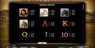 The Mongol Treasures slot machine from the Endorphina provider has a standard 5x3 playing field with10 pay lines.