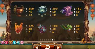 Monkey King Feature – the main hero may appear at the screen during any regular spin and turn some of the symbols into a different element to help making a winning combination.