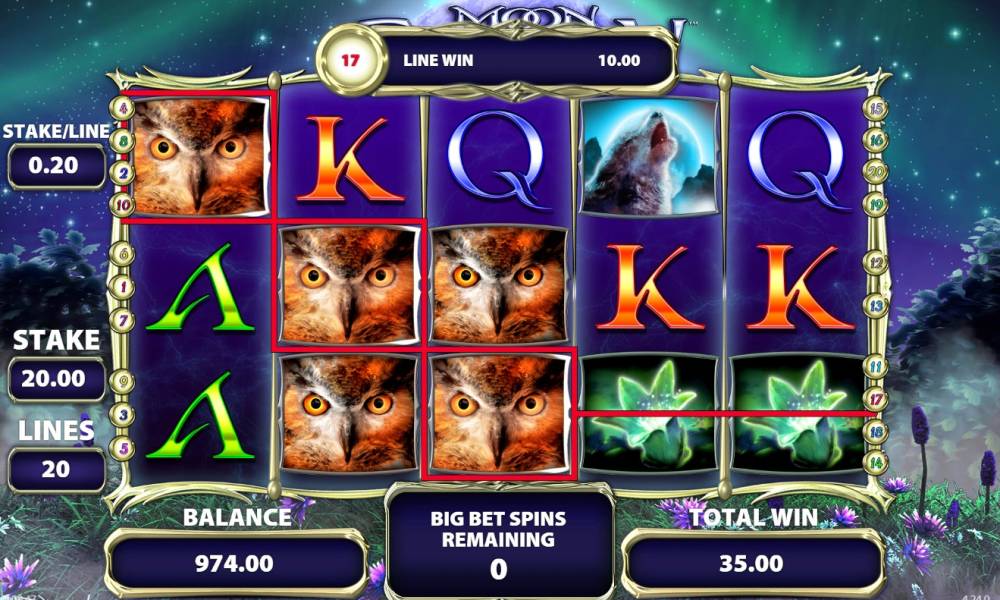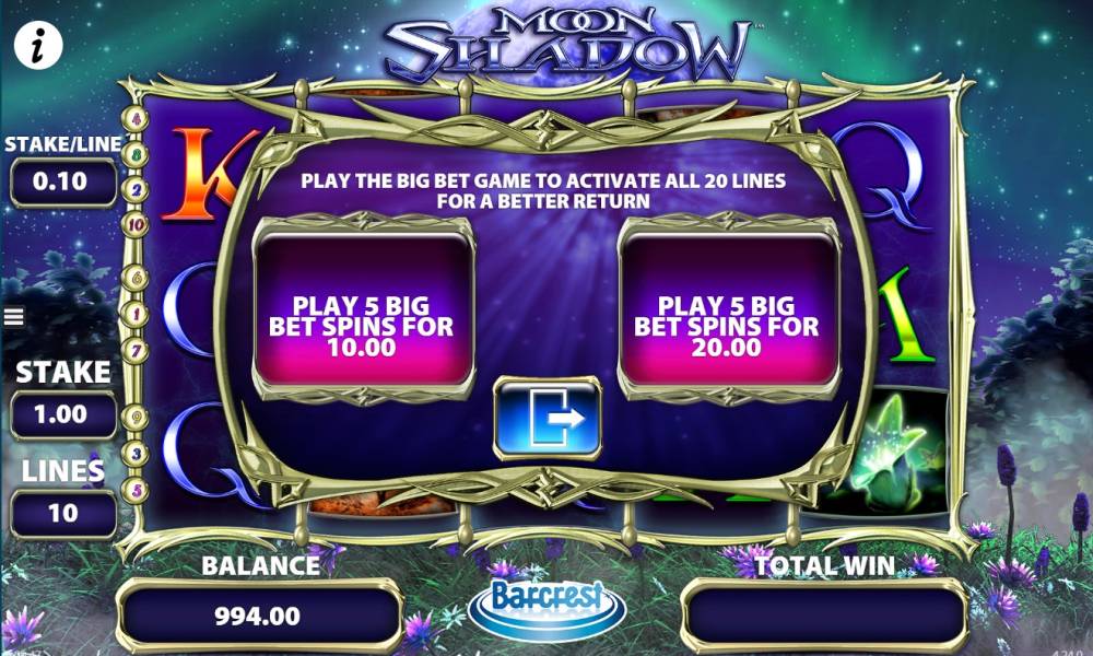 Barcrest company has released a stunning online slot machine named «Moon Shadow», the main heroine of which is a charming girl in an elegant crown, which is walking under the full moon in the night and doesn't afraid of wolves’ earn and owls’ screech. It is hard to say who she is, so we leave it to your imagination and start talking about the features and capabilities of the colorful novelty.
