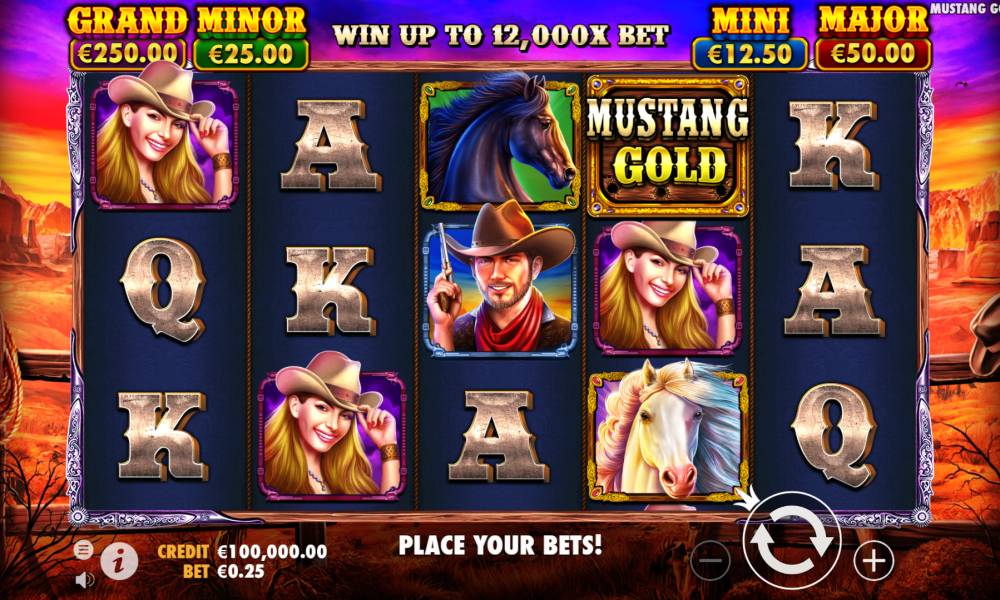 The Mustang Gold slot machine from the Pragmatic Play provider has a standard playing field, consisting of 5 reels with 3 symbols. Payouts are made on 25 lines.