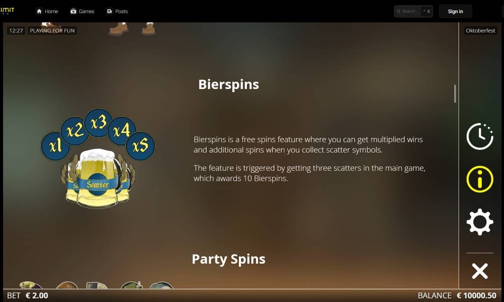 If you're looking for where to play machines including the Oktoberfest, your choices should be limited to licensed casinos. You can find information about the casino's authorization yourself, read reviews about the giving machine. This will all become the basis for an informed choice. Do not take risks with dubious casinos, choose only honest, decent and licensed online casinos.